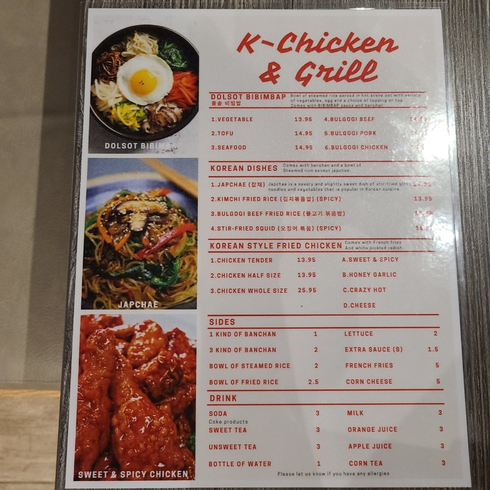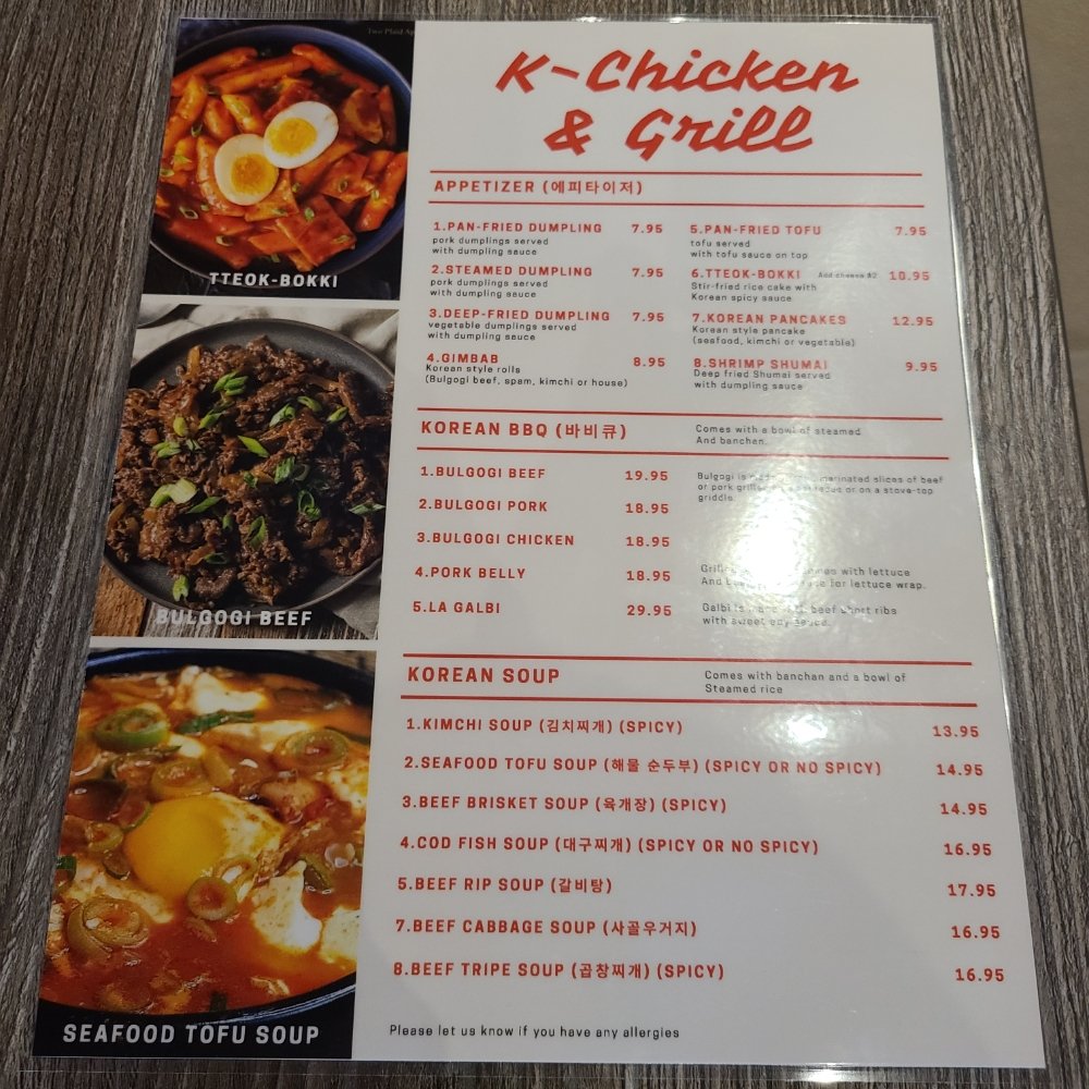 Welcome to K - Chicken and Grill Korean BBQ, where authentic flavors meet a vibrant atmosphere in Tampa, FL. This casual dining spot specializes in Korean barbecue, allowing guests to savor an array of delectable dishes. Offering both all-you-can-eat (AYCE) options and traditional a la carte selections, the menu features highlights like Galbi (marinated ribs) and Beef Bulgogi that are sure to please your palate.